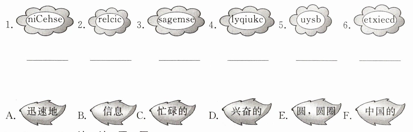 1.Chinese,F 2.circle,E 3.message,B 4.quickly,A 5.busy,C 6.excited,D