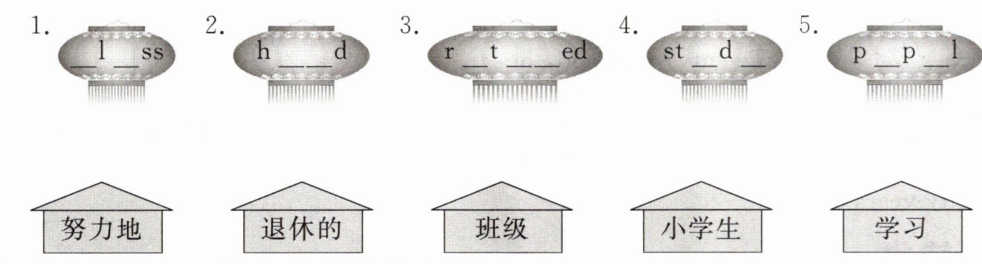 Ⅰ.Fill and match.填入所缺字母,并与相应的汉语意思连线。