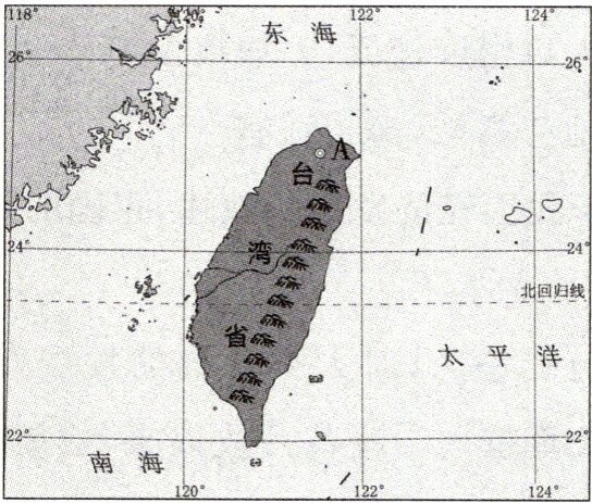 1. 从图中所处纬度位置来判断,台湾岛南部属于