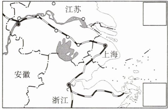 1. 提示:上边的框为黄海,下边的框为东海。 2. 京沪线、沪杭线。 3. AD