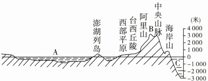 下面是沿北回归线台湾省地形剖面图,读图回答问题。