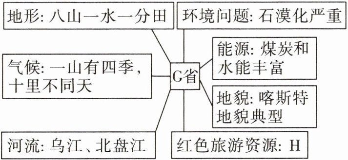 绘制思维导图,可以帮助我们建构知识体系,拓展地理思维。玲玲上课时跟着老师绘制了我国某省的思维导图(下图)。读图,回答2~4题。