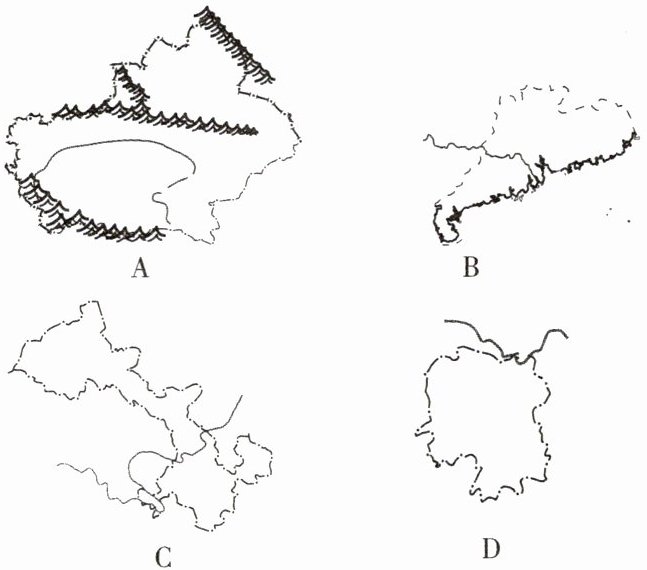 二、1. B 2. A 塔里木河 B 珠江 C 黄河 D 长江 3. BDCA 从东南向西北递减
