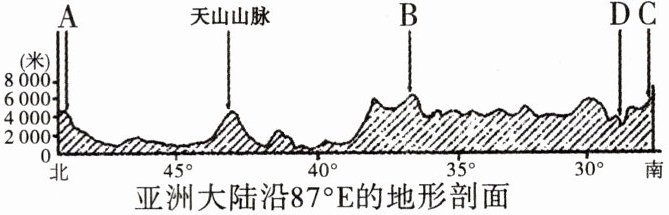 1. 阿尔泰 昆仑 喜马拉雅 2. 青藏高原 高原山地 3. 雅鲁藏布 热带季风 西南季风从印度洋上带来大量水汽,降水丰富