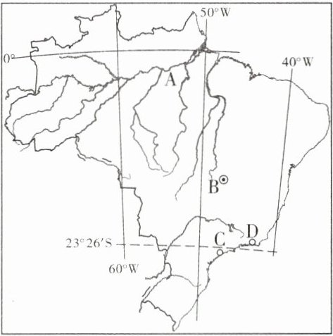 (1)从纬度位置看,巴西大部分面积位于五带中的