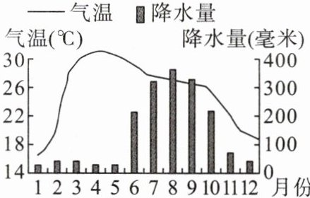 泰国香稻米在扬花期间要求有较低的气温、较少的降水及逐渐降低的土壤温度。结合泰国气候资料图,回答2~3题。