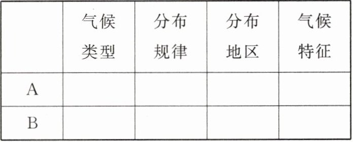 | | 气候类型 | 分布规律 | 分布地区 | 气候特征 |
