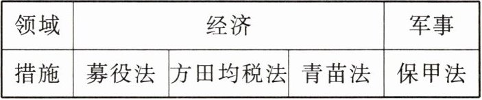 )①表格反映的是王安石变法 ②该事件得到了大地主的支持 ③该事件的目的是实现富国强兵 ④该事件收到一些成效但以失败告终