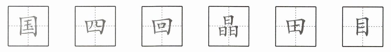 国的第三画:㇆;四的第三画:㇆;回的第三画:㇆;晶的第三画(以最上面的“日”为例):㇆;田的第三画:㇆;目的第三画:㇆。