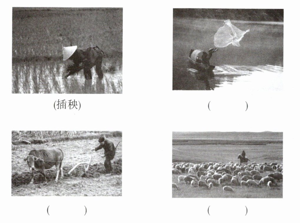 四、仿照示例,写出下列图片表现的劳动内容。从中任选一幅图片,用优美的语言写一写画面内容。