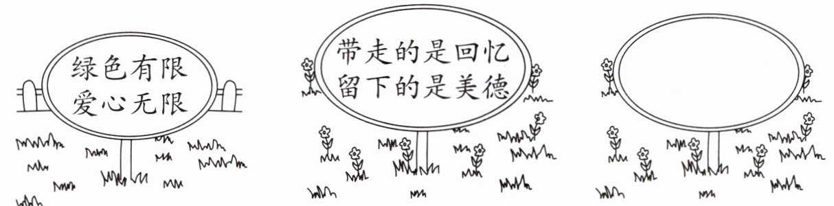 三、欣赏下面草坪上的标语,并请仿写一句爱护花草的标语。