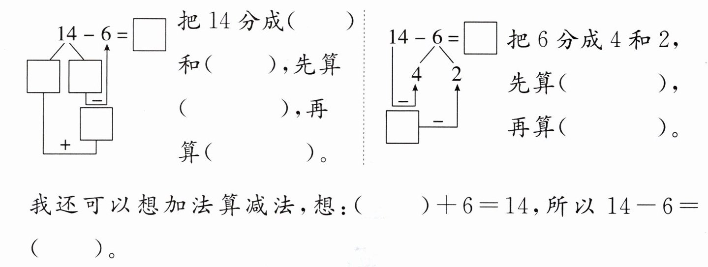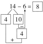 把6分成4和2,先算(14 - 4 = 10),再算(10 - 2 = 8)。