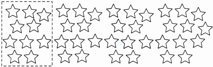 1. 估一估,选一选。上图中大约有多少颗星,在你认为正确的数后面的□里画“√”。