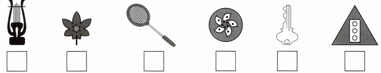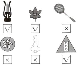 二、下列图形是轴对称图形的在$□$里打“√”,不是的打“×”。