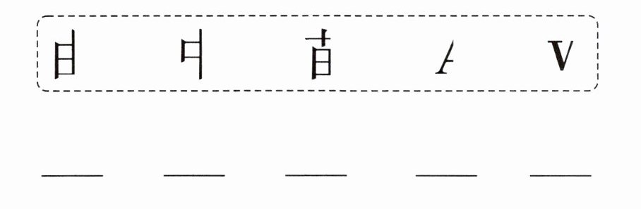 六、下面是一半的汉字和字母,完整的汉字和字母都是对称的,请把完整的汉字和字母写在横线上。