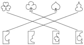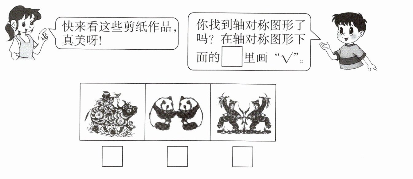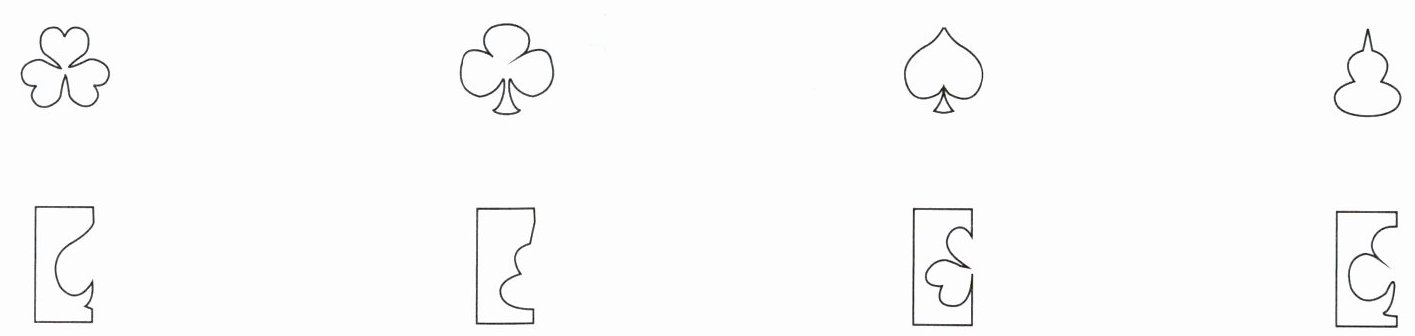 二、下面的图案分别是从哪张对折后的纸上剪下来的?连一连。