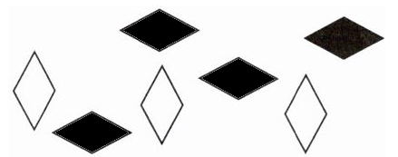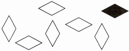 三、下面哪些图形可以通过平移与黑色的图形重合?给它们涂上你喜欢的颜色。