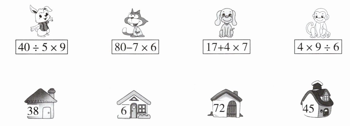 - $80 - 7×6$:先算乘法$7×6 = 42$,再算减法$80 - 42 = 38$。