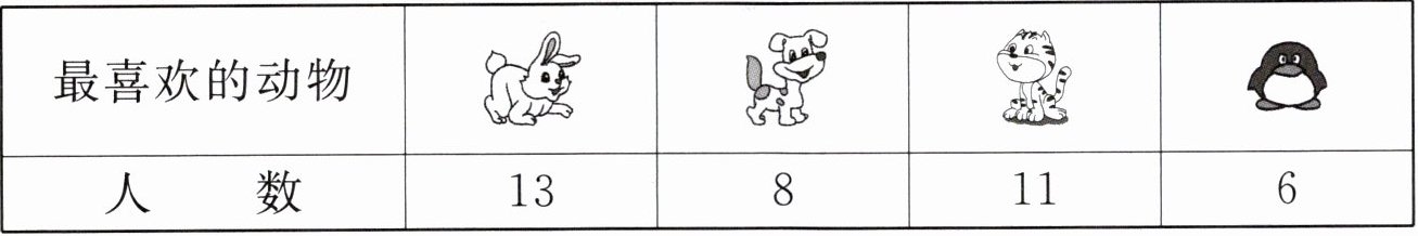 小敏调查了本班同学最喜欢的小动物,情况如下表。