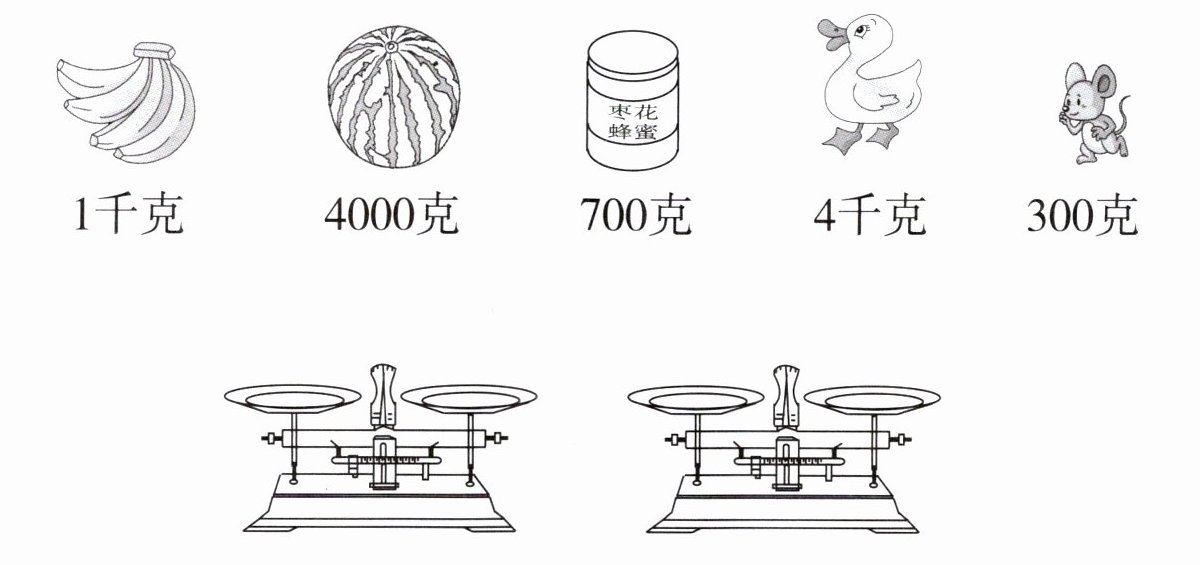 五、下面这些物品,怎样放才能使天平处于下面的平衡状态?