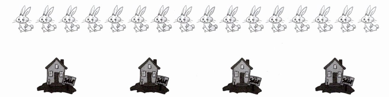 16只小兔平均住进4所房子里,每所房子里住( )只。说一说你是怎样分的。