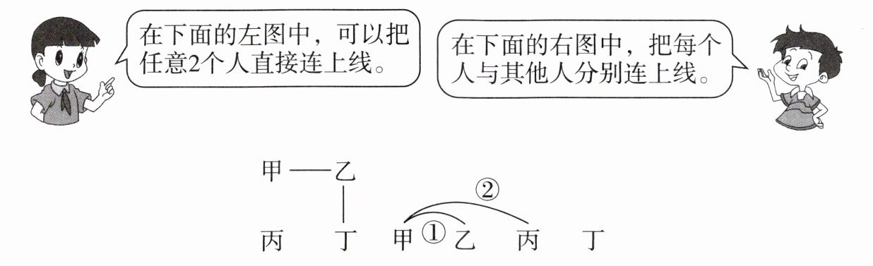 1. 4 个好朋友一起打羽毛球,每两人之间打一场,他们一共打了几场球?