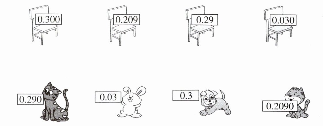 2. 小数的末尾添上“0”或去掉“0”,小数的大小不变。 (