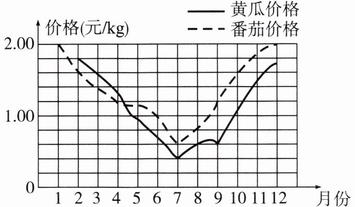 1. 从统计图可看出,哪几个月份番茄的价格最高? 番茄价格最低是哪个月份?