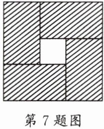 7. 用四个完全一样的长方形(长和宽分别设为x,y)拼成如图所示的大正方形,已知大正方形的面积为36,中间空缺的小正方形的面积为4,则下列关系式:①$x+y= 6$;②$x-y= 2$;③$xy= 8$;④$x^{2}+y^{2}= 36$。其中正确的是