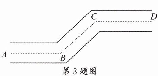 3. 如图,街道 $ AB $ 与 $ CD $ 平行,拐角 $ ∠ABC = 136^{\circ} $,则拐角 $ ∠BCD $ 的度数是(