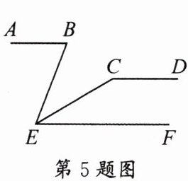 5. 如图,直线 $ AB // CD // EF $,且 $ ∠ABE = 70^{\circ} $,$ ∠ECD = 150^{\circ} $,则 $ ∠BEC = $(