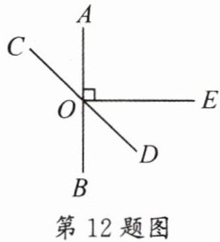 12. 如图,直线 $ AB $,$ CD $ 交于点 $ O $,$ OE ⊥ AB $,$ OD $ 平分 $ ∠BOE $,则 $ ∠BOC = $______