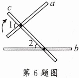 6. 如图,将木条 $ a $,$ b $ 与 $ c $ 钉在一起,$ ∠1 = 85^{\circ} $,$ ∠2 = 45^{\circ} $,要使木条 $ a $ 与 $ b $ 平行,木条 $ a $ 按顺时针方向旋转的度数可以是 ………………………………………( )