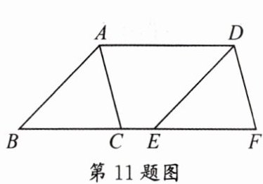 11. 如图,将 $ △ABC $ 沿 $ BC $ 方向平移 $ 8 \text{cm} $ 得到 $ △DEF $,若 $ BF = 7CE $,则 $ BC $ 的长为