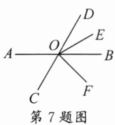 7. 如图,直线 $ AB $,$ CD $ 相交于点 $ O $,$ OE $ 平分 $ ∠BOD $,$ OF $ 平分 $ ∠COE $,$ ∠AOD : ∠BOE = 4 : 1 $,则 $ ∠AOF $ 的度数为 ……………………………………………(