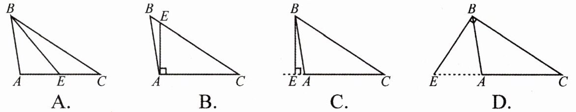 2. 下列图中,正确画出$AC$边上高线的是……………………………(