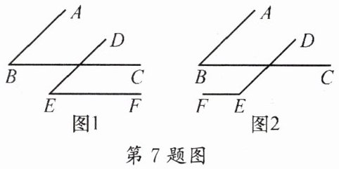 7. 如图,$∠ABC的两边分别平行于∠DEF$的两边,且$∠ABC = 45^{\circ}$。