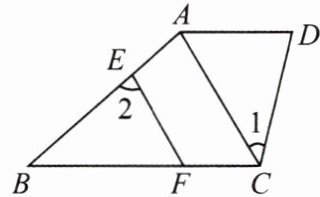(2)因为$\triangle BEF\cong \triangle CDA$,所以$∠2= ∠D= 80^{\circ },∠B= ∠1= 40^{\circ }$,因为$EF// AC$,所以$∠BAC= ∠2= 80^{\circ }$,所以$∠ACB= 180^{\circ }-∠B-∠BAC= 60^{\circ }$。