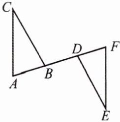 解:因为$AD= BF$,所以$AD-BD= BF-BD$,即$AB= DF$。在$\triangle ABC$和$\triangle DFE$中,因为$\left\{\begin{array}{l} AB= FD,\\ BC= FE,\\ AC= DE,\end{array}\right. $所以$\triangle ABC\cong \triangle DFE$(