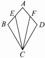 分析:要证明$CE = CF$,只需要找到一对全等三角形,因此考虑连结$AC$,先证明$\triangle ABC\cong \triangle ADC$,得到$∠B = ∠D$,再证明$\triangle BEC\cong \triangle DFC$即可。