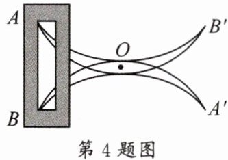 4. 如图,将两根钢条$AA'$,$BB'的中点O$连在一起,使$AA'$,$BB'可以绕着点O$自由转动,就做成了一个测量工件,则$A'B'的长等于内槽宽AB$,那么判定$\triangle AOB\cong \triangle A'OB'$的理由是