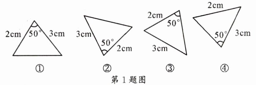 1. 下列两个三角形全等的是 ……………………………………………………(