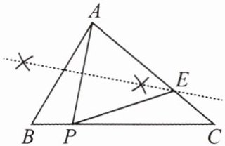 (1)用直尺与圆规作线段AP的中垂线,交AC边于点E。(保留作图痕迹,不写作法)