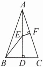 答案:相等,理由如下:如图,连结CE,因为AD⊥BC,BD= CD,所以AD垂直平分CB,所以BE= CE,因为线段AC的垂直平分线交AD于点E,所以AE= CE,所以AE= BE。