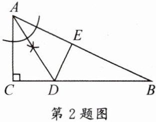2. 如图,在△ABC中,∠ACB= 90°,DE⊥AB,根据尺规作图的痕迹,以下结论不一定成立的是 ………… (