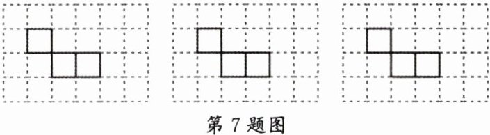 7. 请分别在下面的三个网格图中各补画一个小正方形(要求:三个图形形状各不相同,所设计的图案是轴对称图形)。