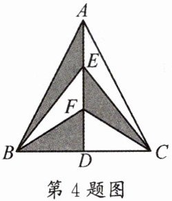 4. 如图,在△ABC中,AB= AC,AD是BC边上的高线,E,F是AD的三等分点。若△ABC的面积为$12cm^2,$则图中阴影部分的面积是$