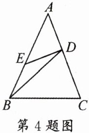 4. 如图所示,在$\triangle ABC$中,点D在AC上,点E在AB上,且$AB= AC,BC= BD,AD= DE= EB$,则$∠A$的度数为