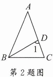 2. 如图,等腰三角形ABC中,$AB= AC$,BD平分$∠ABC,∠A= 36^{\circ }$,则$∠1$的度数为 ………………………………………………………………………… (