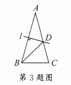 3. 如图,在$\triangle ABC$中,$AB= AC,∠A= 30^{\circ }$,AB的垂直平分线$l$交AC于点D,则$∠CBD$的度数为 ………………………………………………………………… (